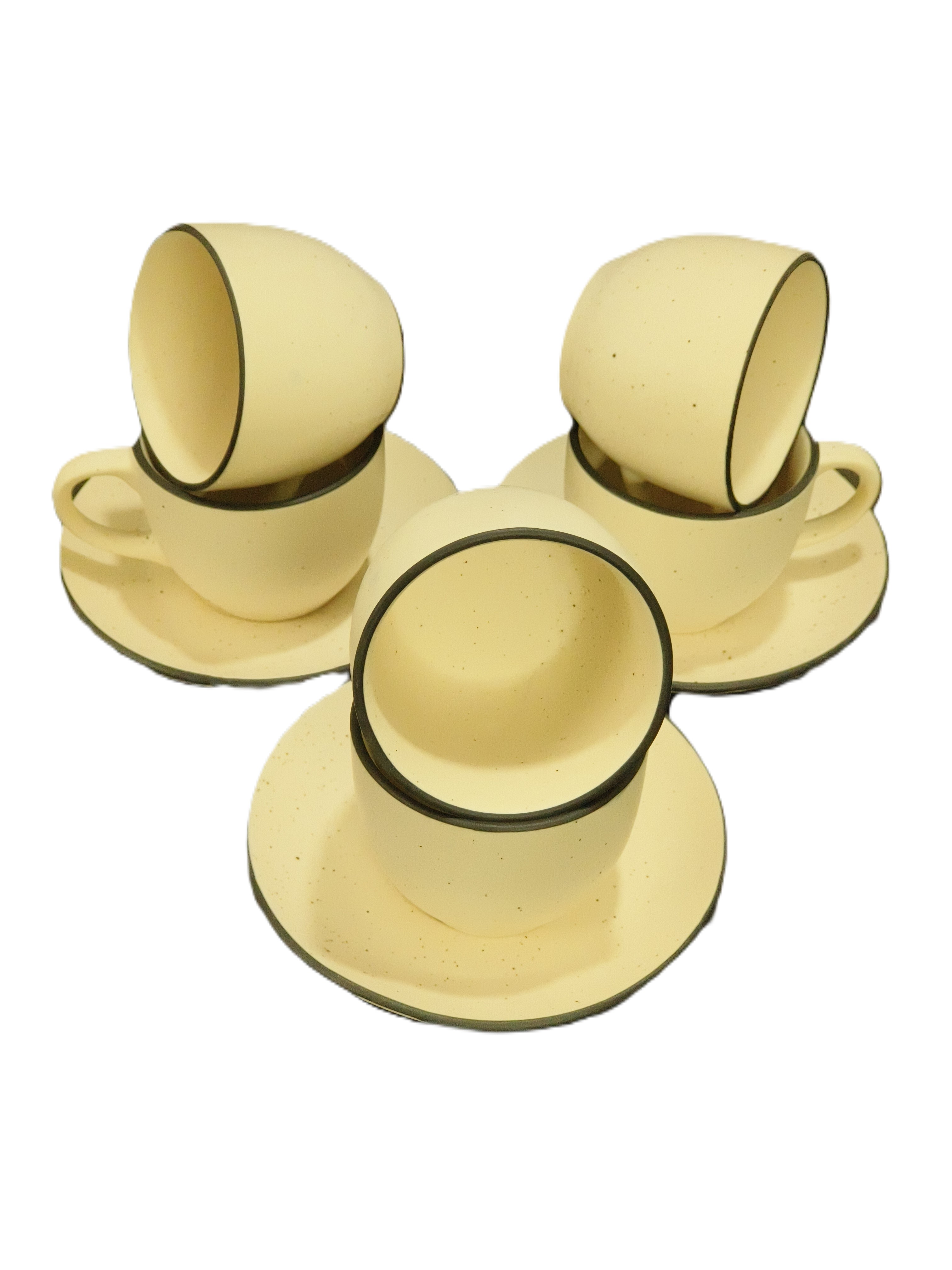 This minimalist ceramic tea cup and saucer set brings a calm, modern touch to your tea or coffee routine. The soft cream finish with subtle speckles and a contrasting dark rim gives it a clean, premium look that fits beautifully in both contemporary and classic spaces.