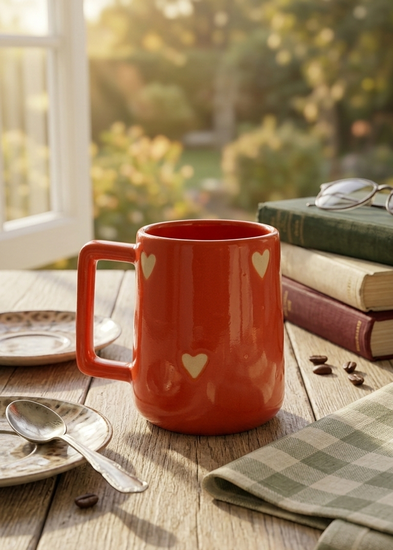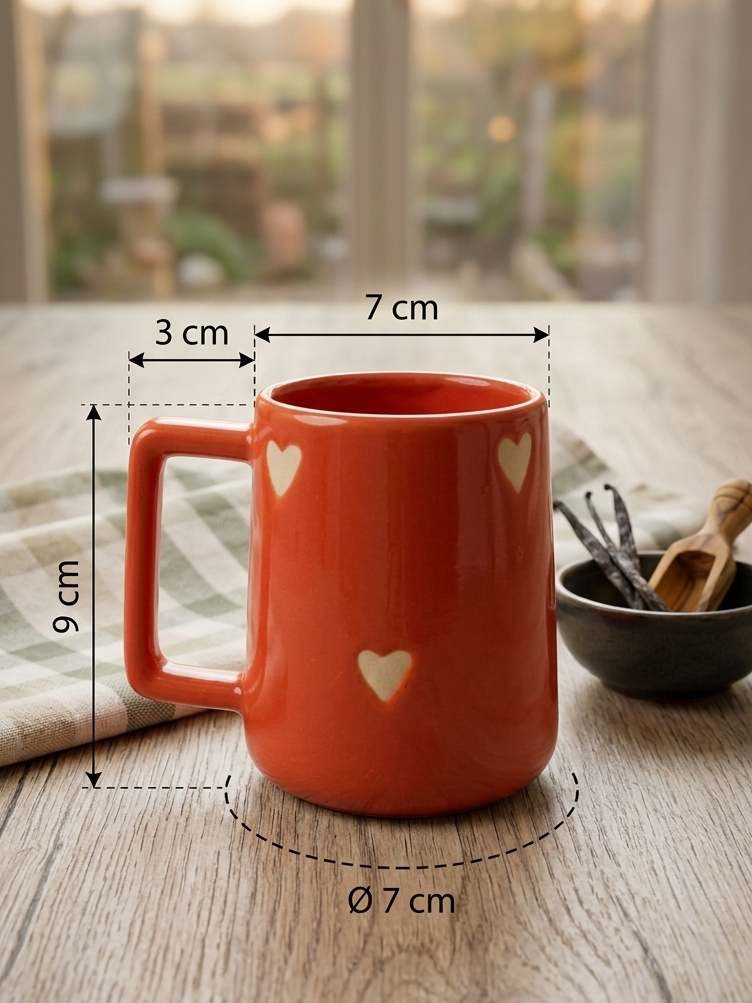 Add a little love to your everyday coffee or tea routine with this charming red ceramic mug. Designed with a rich glossy finish and subtle heart accents, it brings a warm, cozy feel to every sip. The deep red color paired with soft cream heart details makes it simple yet eye-catching.
